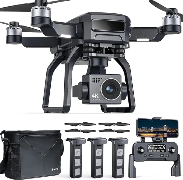 Foldable GPS 75 Mins Foldable 4K Drone with Brushless Motor Inbuilt, HD Camera, 3-Aix Gimbal + Bwine Drone Battery Replacement for F7, 11.1V 2600mAh/28.86Wh